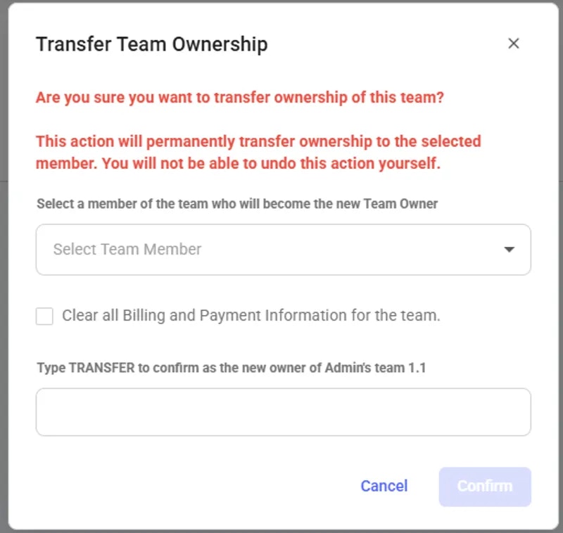 Transferring Team Ownership